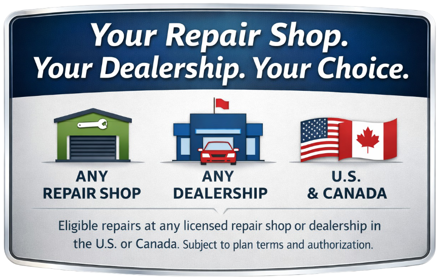 Yes. Eligible repairs may be completed at any licensed repair shop or dealership in the U.S. or Canada, subject to plan terms.